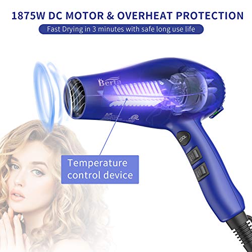 【Save on Drying Time】Professional 1875W DC motor delivering strong consistent airflow to dry even thick wavy hair in 3 minutes without damage,Safety & Low noise.