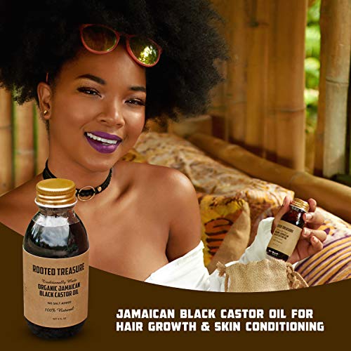 100% Pure. Rooted Treasure Black Castor Oil is made directly in Jamaica using the traditional handcrafted process as our elders. No salt or preservatives added and is hexane free. Our JBCO is not massed produced or filtered. Jamaican black castor oil works for all hair types and beards, eyebrow.